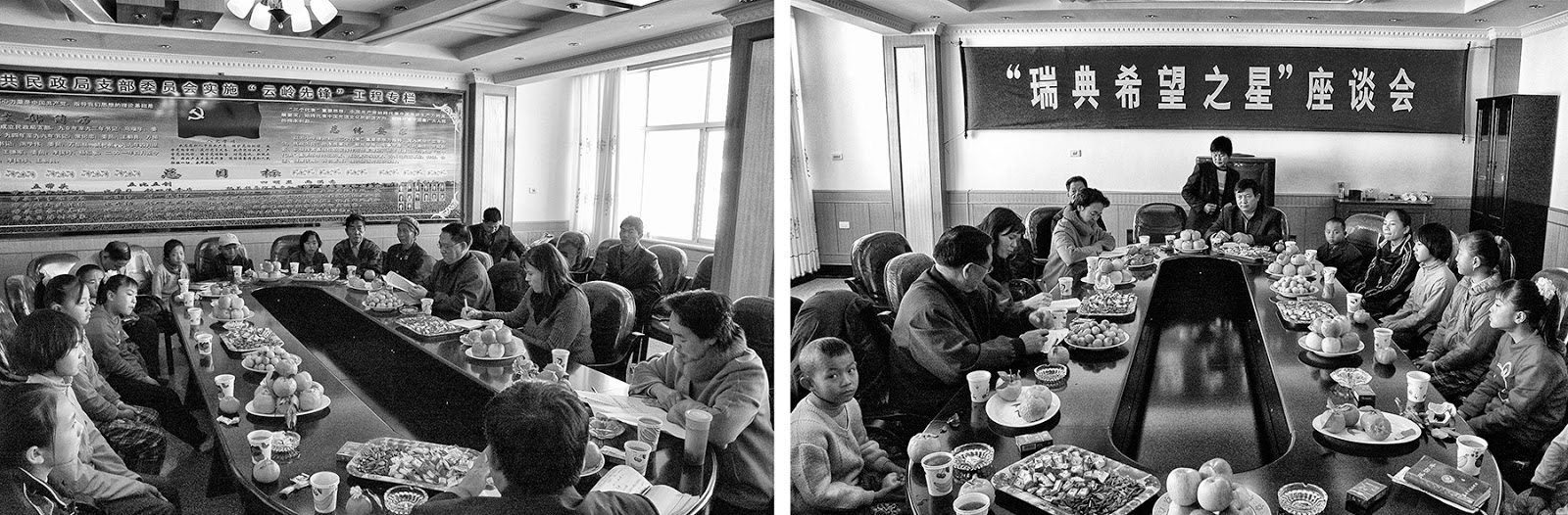 Blyga och mycket tysta trippade de in, tio stycken barn i olika åldrar från kommunen Joping i södra Kina. De var både nervösa och osäkra på hur de skulle uppföra sig, det är ju inte var dag man är på fest tillsammans med borgmästaren och andra viktiga människor från kommunen, dessutom två vita personer från Sverige.